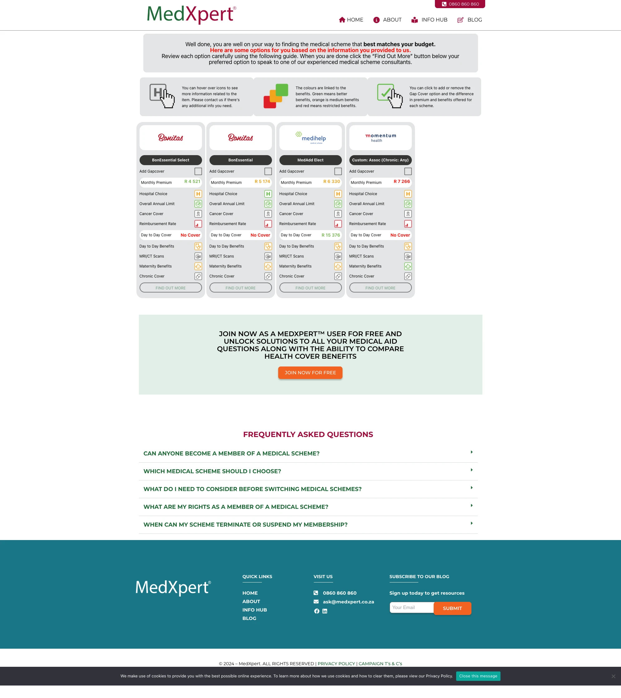 Empowered Optivest and MedXpert with a flexible, self-contained pricing tool for medical aid customers — improving lead quality, reducing manual data entry, and increasing conversion confidence.