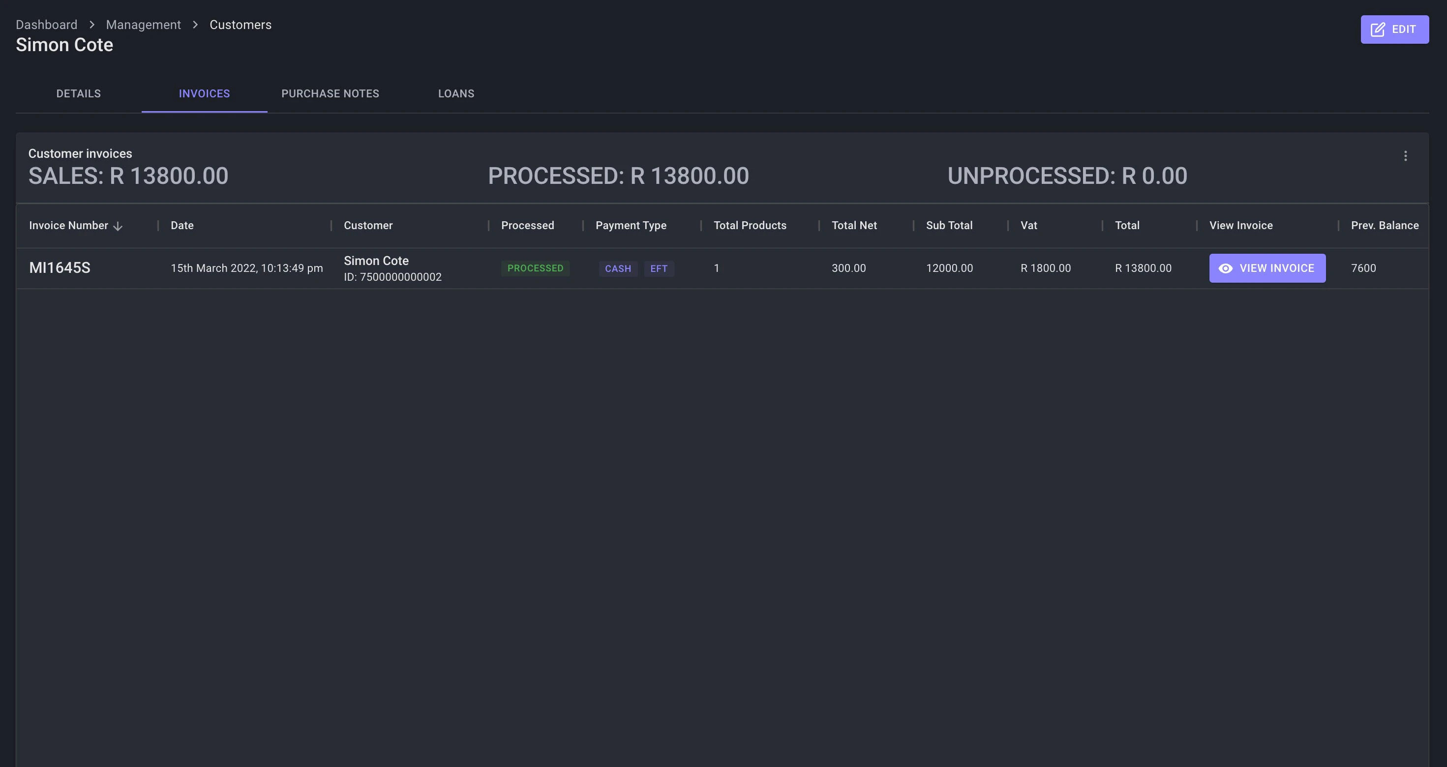- Customers can be searched or displayed on the POS Purchase Dashboard with their most important information.