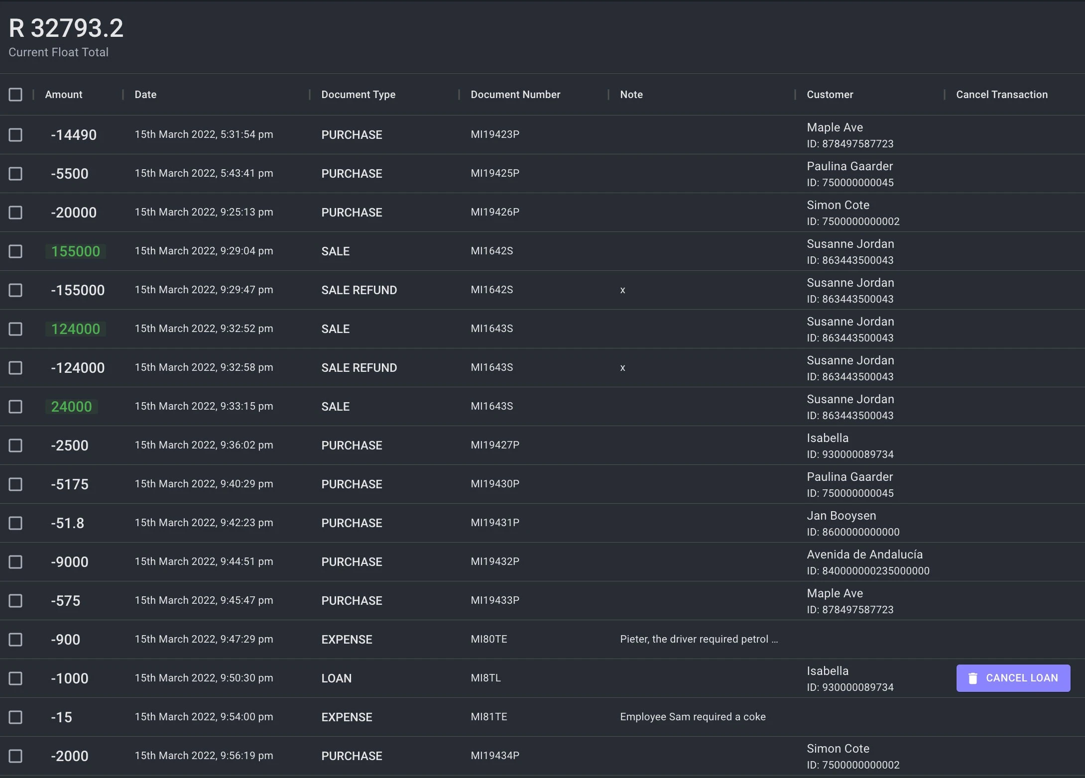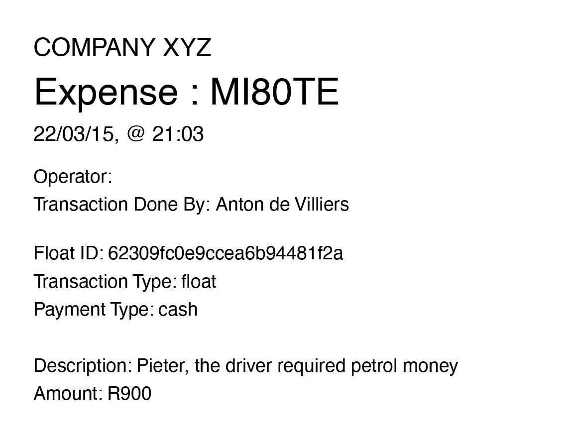 - Float Issued & Received. Float's can be transfered from one cash register or till user to another.