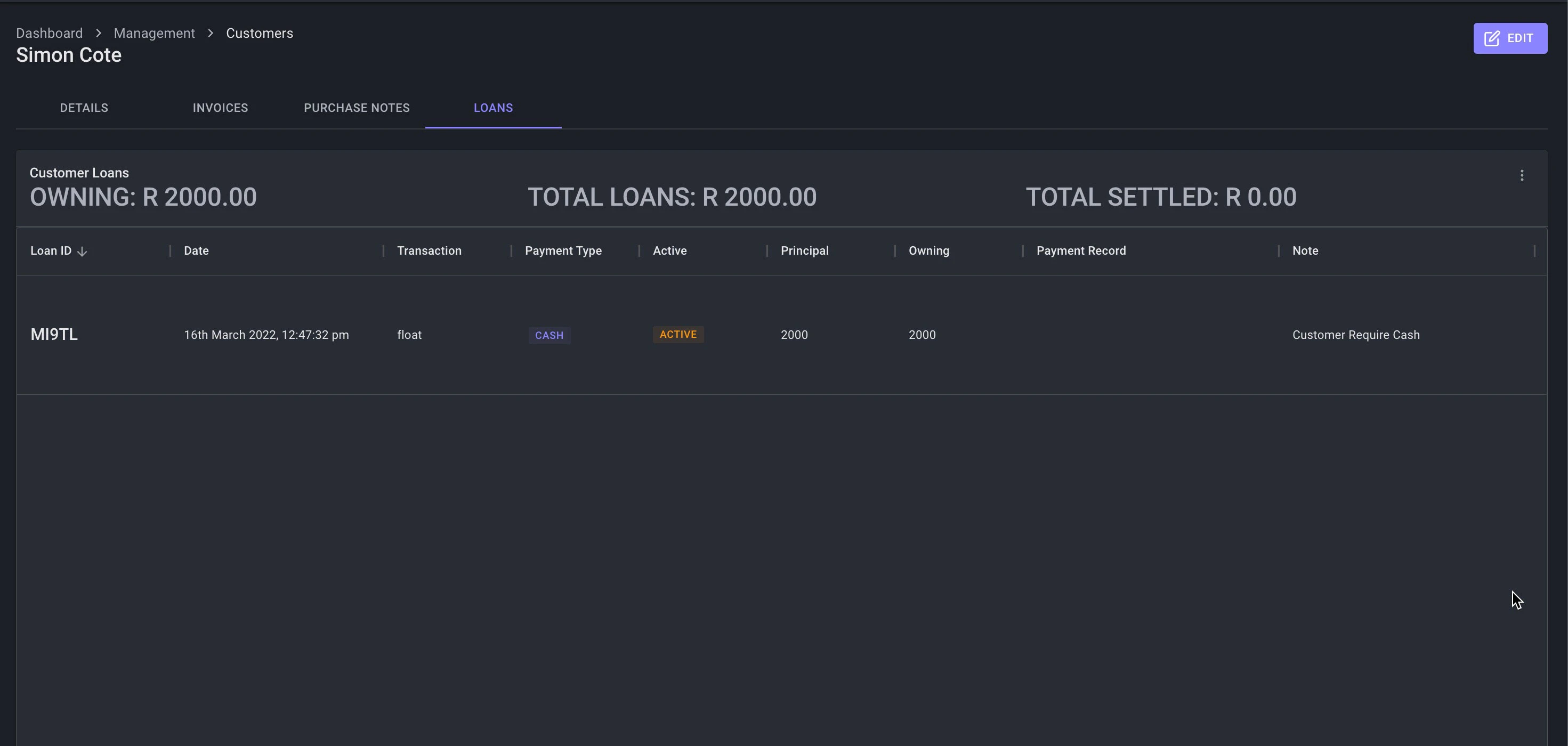 - Loans also have a buildin audit tracking system. Users who issued the loan or performed the a loan payment is logged in the system.