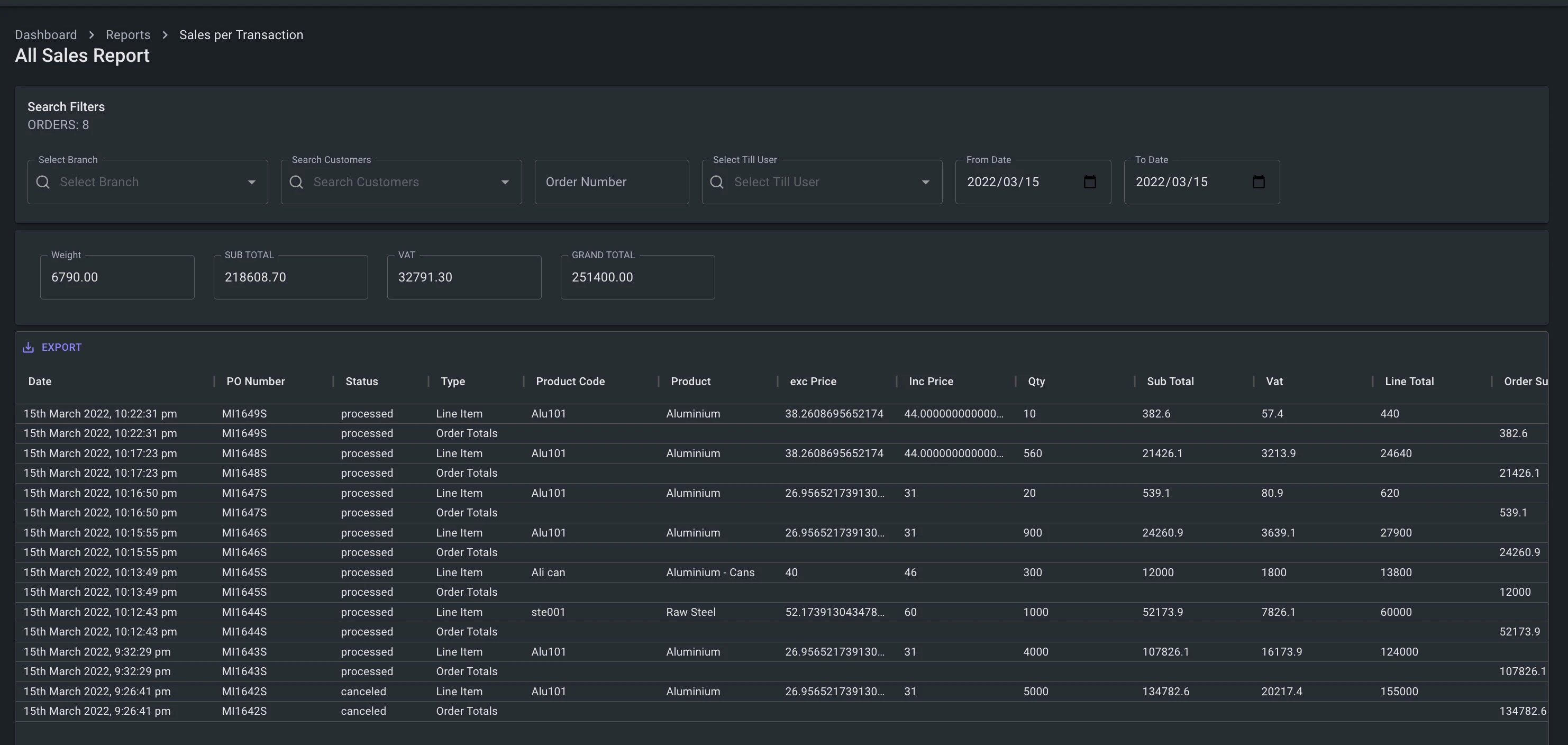 - These reports are broken down to their line items to give a full comprehensive detailed breakdown of each transaction on one screen. This can give you an clear audit report for any type of operation performed on the system for a given order type, float, product or even live stock quantities via the trade summary.