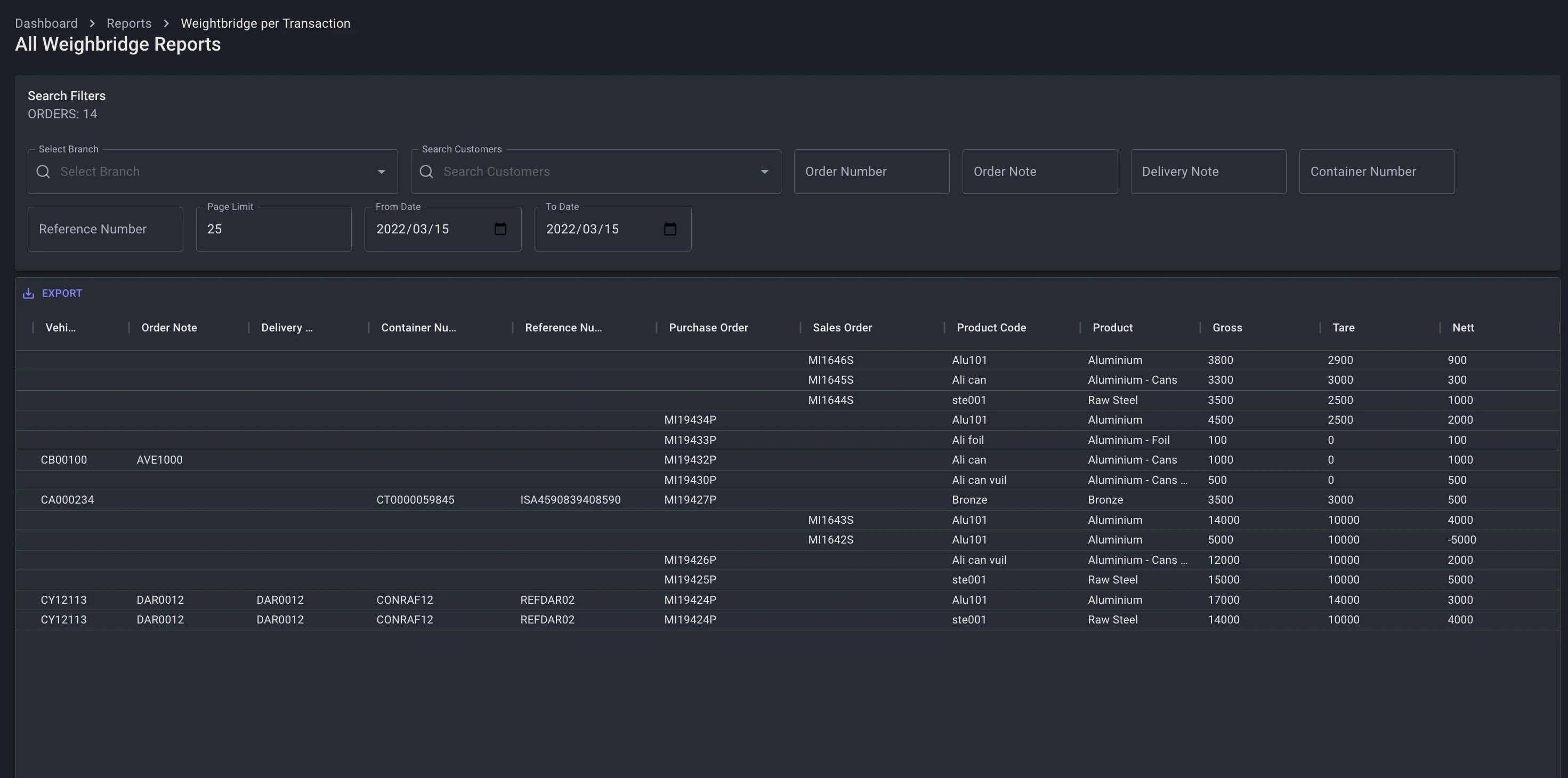 The ability to pull live reports, by filterable search results. Reports for: Weighbridges, Purchase, Sales, Trade Summary, Floats, Cashups, Customers & Products.