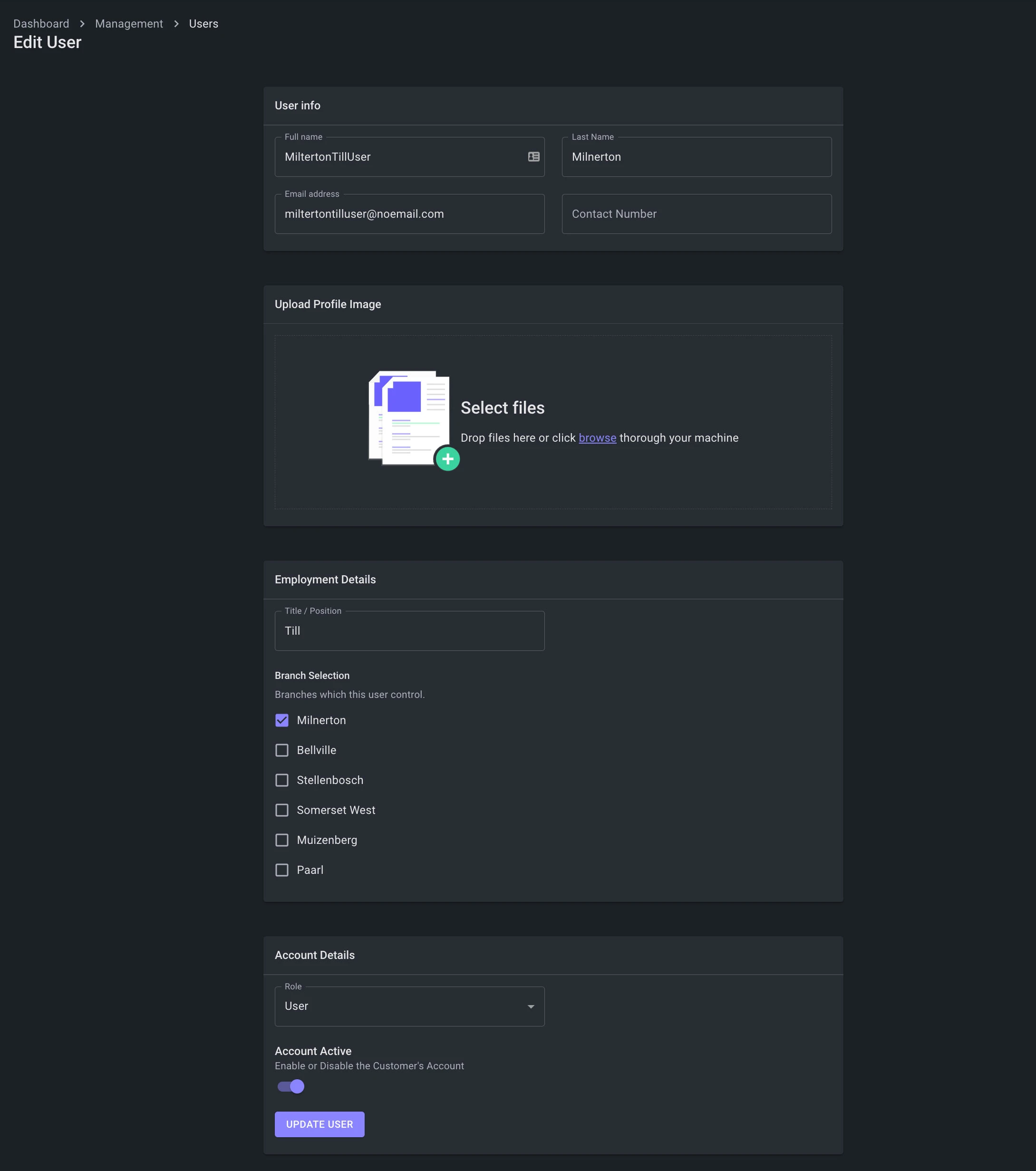 - User Branch Management