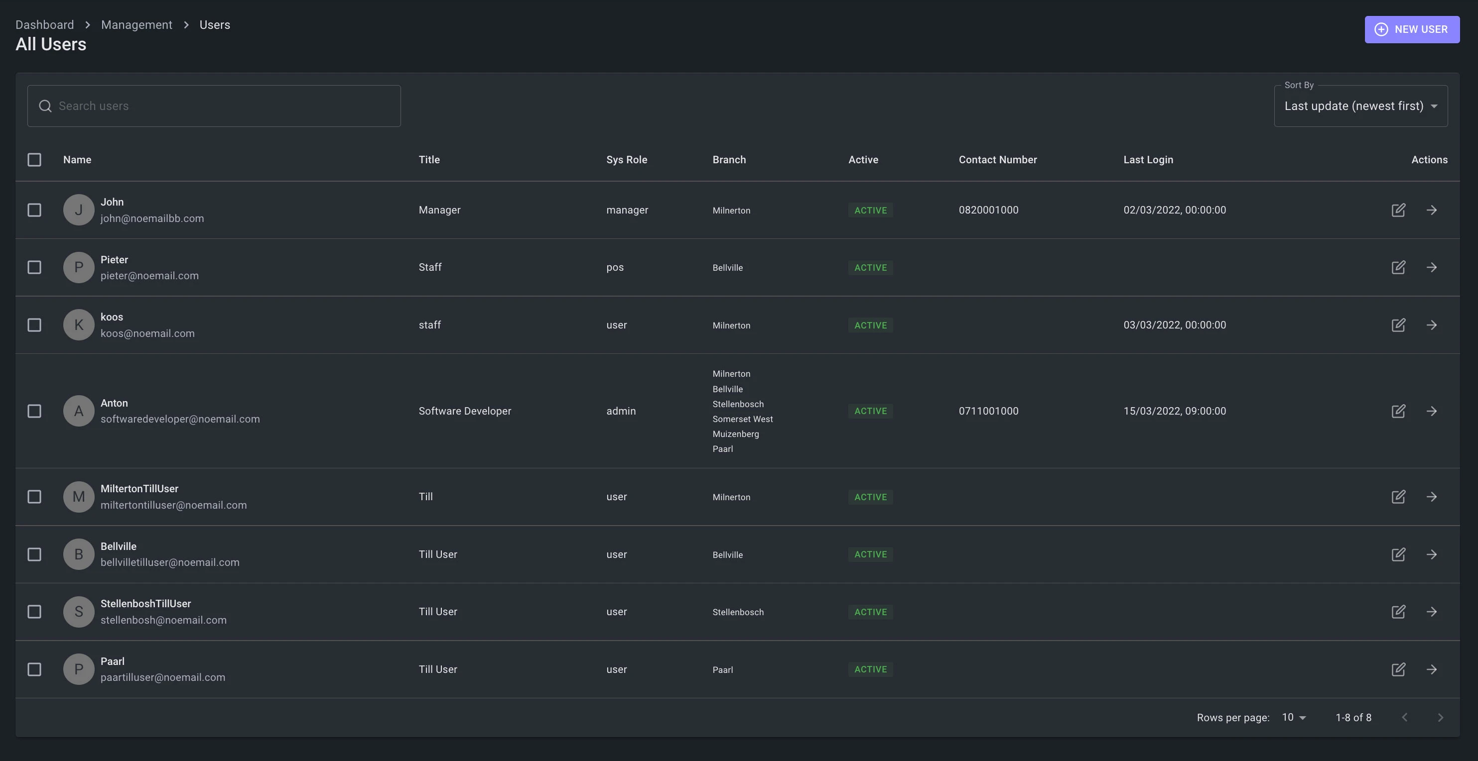 - User's can be assigned to one or many branches.